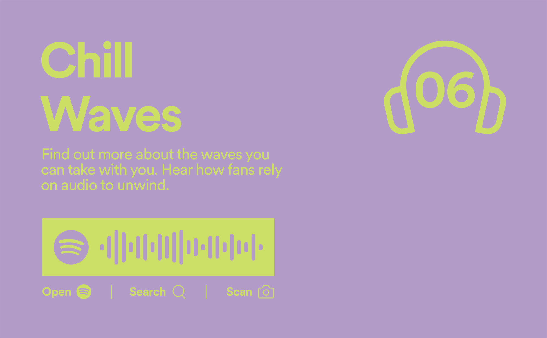 Utilizing Spotify's "Streaming Intelligence" we created an audio-based experience that set to unlock the power of creativity in the very medium the message would be delivered in. But this wasn't just a podcast. Using 'Exhibition-style' Spotify Codes (a unique way for Spotify users to discover and share content) we contextualized the creative to the to the listeners environment, mood or mindset - the same way listeners do when they open up Spotify.